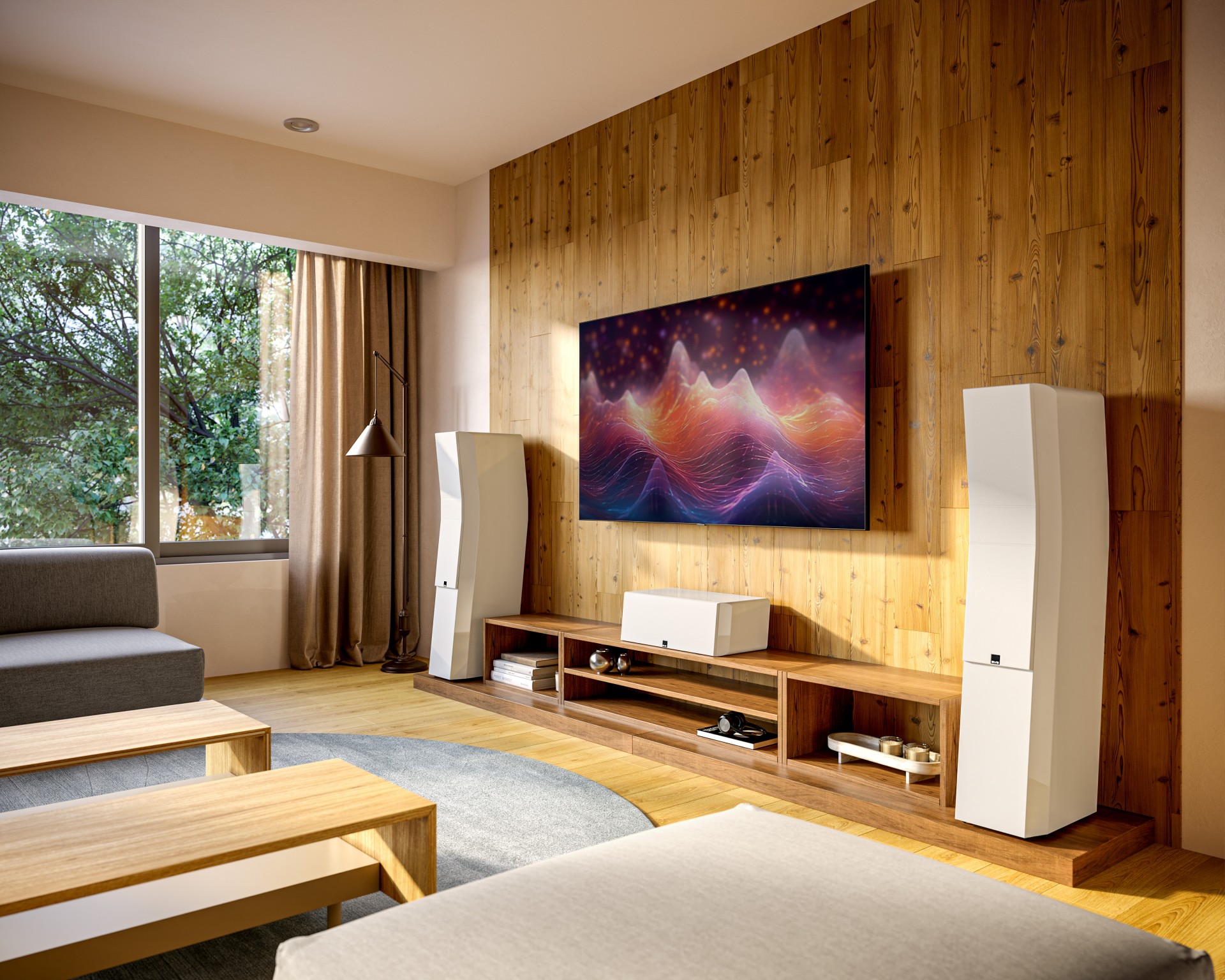 ự kết hợp giữa những đột phá về kỹ thuật cùng niềm đam mê âm thanh xuất sắc đã nâng Ultra Evolution lên đẳng cấp loa tốt nhất thế giới. Thoạt nhìn, đặc điểm thiết kế nổi bật nhất là kiến trúc thùng căn chỉnh thời gian tập trung vào âm thanh. Một đường cong ở màng ngăn trước căn chỉnh điểm phát ra âm thanh loa tweeter và từng củ loa trên một mặt phẳng thẳng đứng, đảm bảo âm thanh từ mỗi củ loa đến tai người nghe trong cùng một thời điểm. Điều này tối đa hóa sự kết hợp pha để có âm trường thuyết phục, đắm chìm hơn. Cụ thể đối với các mẫu loa dạng tháp, trình điều khiển tầm trung và loa trầm đặt phía trên và bên dưới loa tweeter cho phép hòa trộn phân tần liền mạch, tạo ra một “nguồn điểm” lý tưởng. Trong đó, âm thanh truyền từ một điểm duy nhất phía trước để tối ưu hóa đặc tính phân tán.