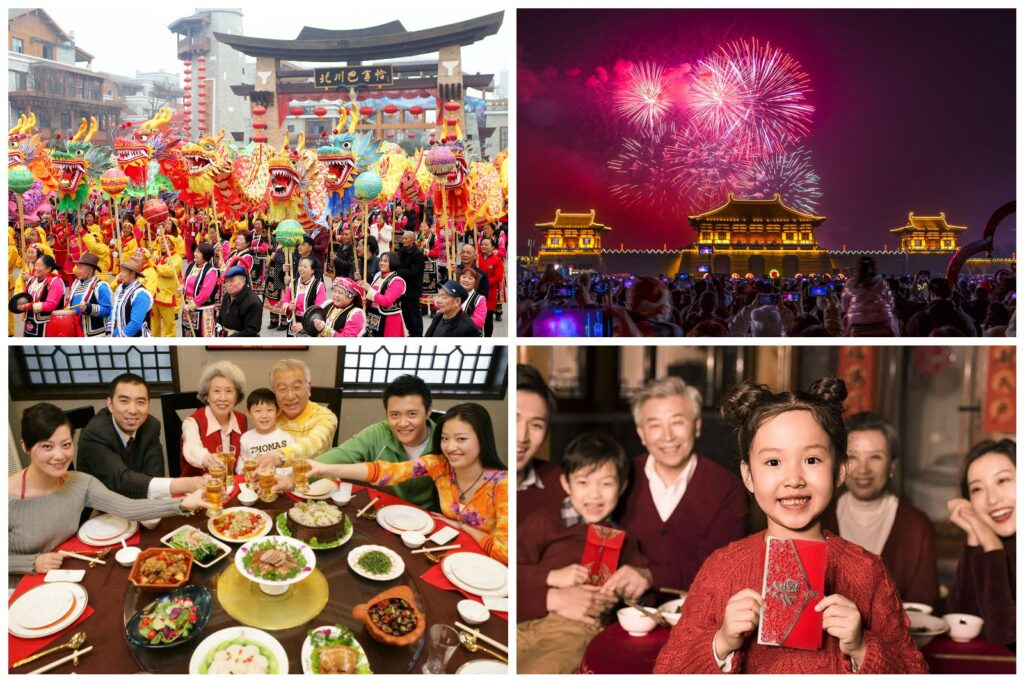 Tết Nguyên Đán của Trung Quốc, còn được gọi là Lễ hội Mùa Xuân, là kỳ nghỉ lễ chính thức kéo dài 15 ngày và kết thúc bằng Lễ hội Đèn Lồng. Một số truyền thống quan trọng bao gồm bữa cơm đoàn viên vào ngày 28/1, tục trao hongbao (bao lì xì đỏ) đựng tiền như biểu trưng của vận may, cùng các màn múa rồng và múa lân. Những màn trình diễn này rất phổ biến trong dịp lễ vì gắn với niềm tin có thể xua đuổi điều xui rủi.