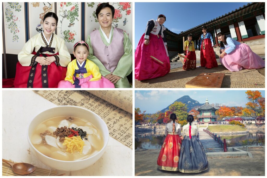 Được gọi là Seollal, Tết Âm lịch của Hàn Quốc cũng kéo dài ba ngày. Trong đó, phần lớn các hoạt động diễn ra vào ngày đầu tiên. Những bữa ăn truyền thống trong dịp Seollal thường có tteokguk – canh bánh gạo – biểu trưng cho sự khởi đầu của một chu kỳ mới trong năm. Trang phục truyền thống hanbok thường được mặc trong các buổi lễ, nơi mọi người trao quà và tham gia các trò chơi dân gian.