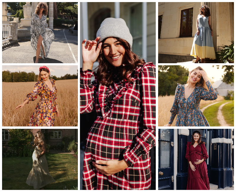 Emilia George ghi dấu với phong cách sang trọng nhưng nhẹ nhàng. Tất cả thiết kế sử dụng chất liệu thân thiện môi trường và mang cảm giác thoáng, mềm, phù hợp với sự thay đổi cơ thể mẹ. Váy len trễ vai, áo khoác oversized, đồ rib hoặc các thiết kế đơn sắc tinh tế đều giúp mẹ bầu cảm thấy vừa sang trọng vừa thoải mái trong những tháng ngày nặng nề này.