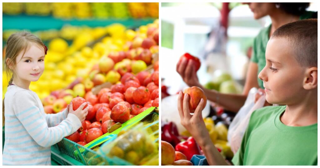 Để trẻ cùng tham gia vào việc chọn mua và chuẩn bị trái cây, rau củ là cách thiết thực giúp các em quan tâm hơn đến thực phẩm lành mạnh. Khi đi siêu thị cùng bố mẹ, bé có thể học nhận biết các loại nông sản qua màu sắc, hình dáng, dần hiểu giá trị của từng lựa chọn. Những câu hỏi đơn giản như chọn quả tươi nhất hay tìm loại rau theo chữ cái nhất định sẽ khiến hoạt động mua sắm trở nên sinh động và mang tính tương tác.