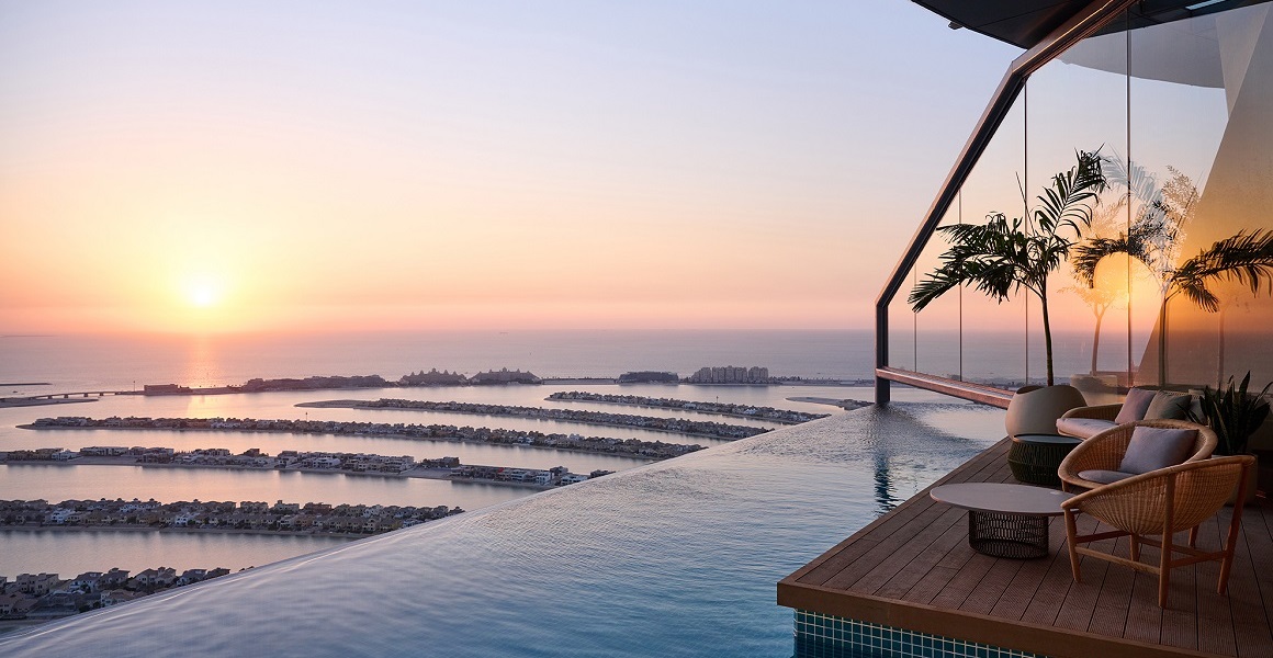 Lơ lửng ở độ cao 200 mét giữa bầu trời Dubai, AURA Skypool là hồ bơi vô cực sở hữu tầm nhìn tuyệt đẹp ra quần đảo nhân tạo Palm Jumeirah, nơi ghi dấu ý chí chinh phục của con người trước vịnh Ba Tư hùng vĩ.